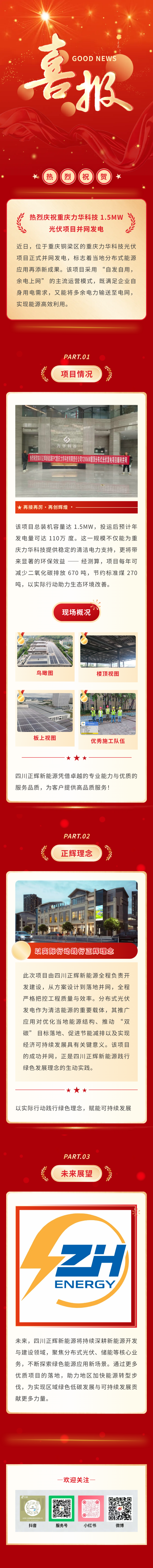 四川正輝新能源科技有限公司2018年5月29日在四川省華鎣市工商行政管理局登記成立,是一家可研化、技術化、多元化的綜合性企業。企業經營范圍;新能源技術發展、推廣與技術咨詢服務;太陽能科技研發;光伏發電項目的開發、建設、維護、經營管理與技術咨詢;風力發電工程;電力工程施工;電力設備制造、銷售;建筑工程施工;園林綠化工程施工...